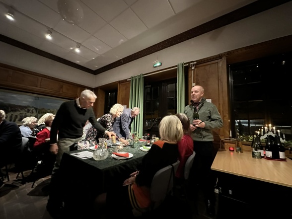 Kaffe och hembakad rulltårta med saffran (Viola special) avrundade måltiden. En och annan bröt upp, några satt kvar och eftersnackade. I köket diskades det och så småningom fanns inget spår kvar av denna härliga kväll tillsammans. Förutom våra fina minnen.