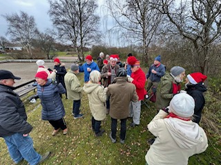 Ljudnivån sjönk efterhand som tallrikarna fylldes av julbufféns läckerheter och kråset smörjdes mellan allsångerna.